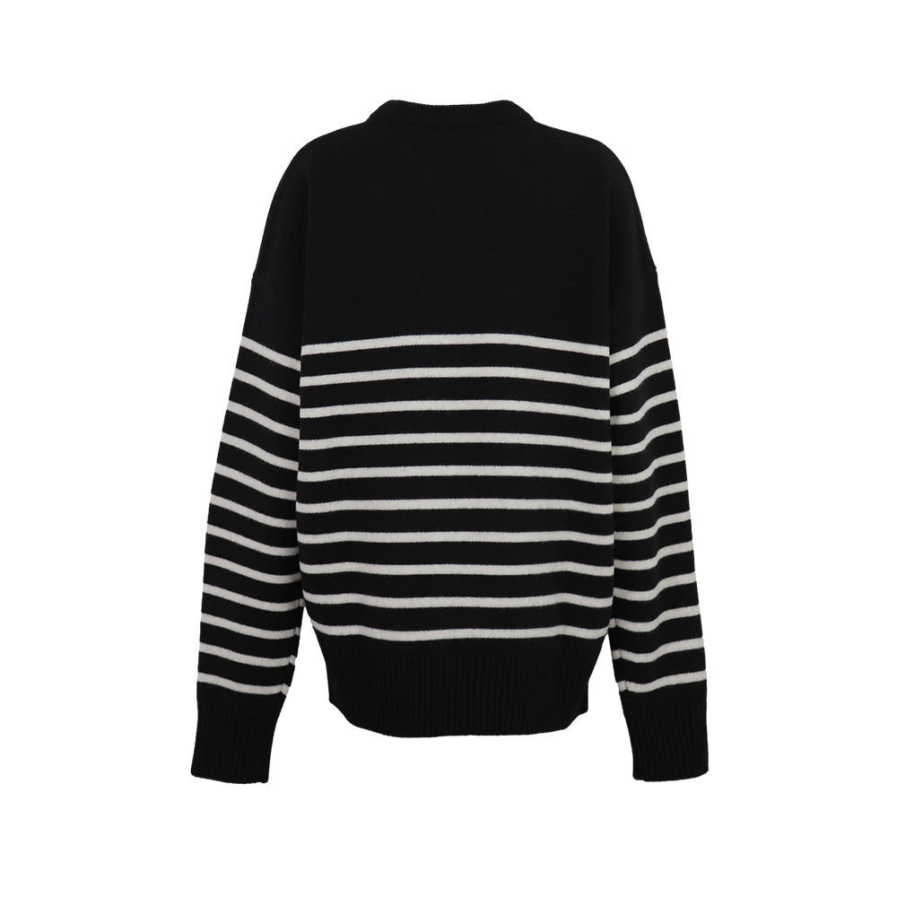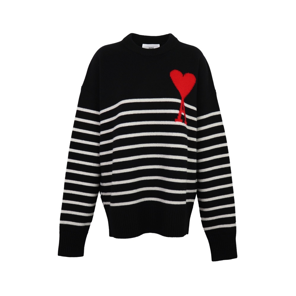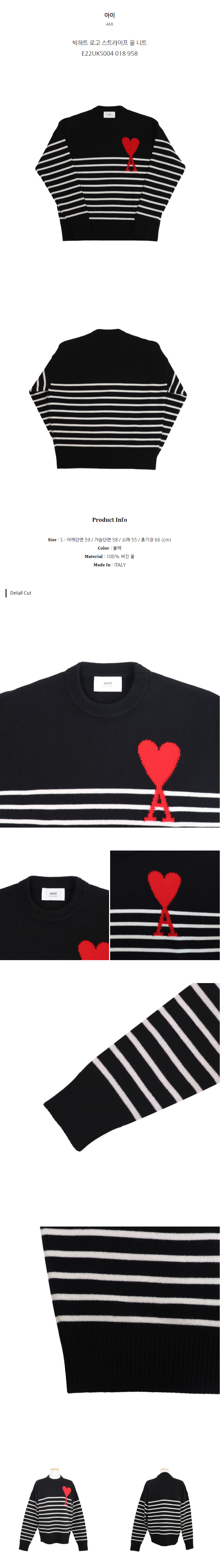 아미 빅하트 로고 스트라이프 울 니트 E22UKS004 018 958 (S)