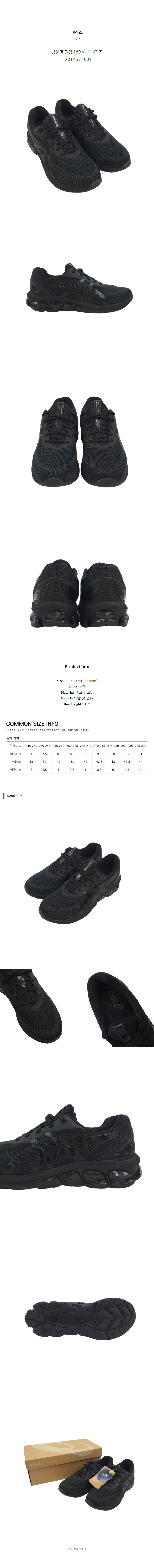 아식스 남성 젤 퀀텀 180 VII 스니커즈 1201A631 001 (US 7.5)