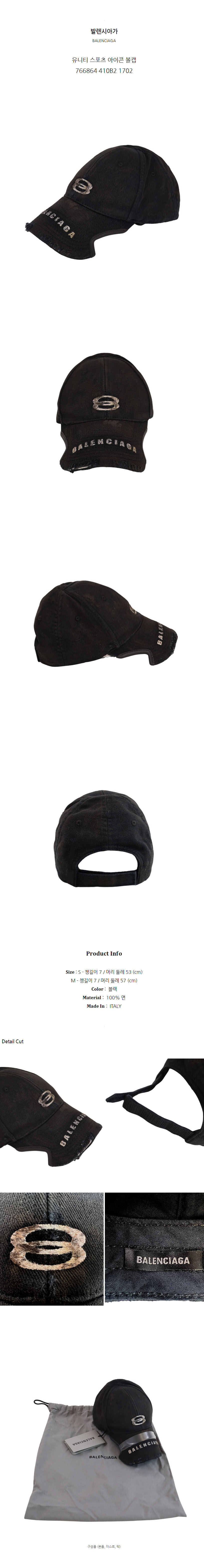 발렌시아가 유니티 스포츠 아이콘 볼캡 766864 410B2 1702 (S)
