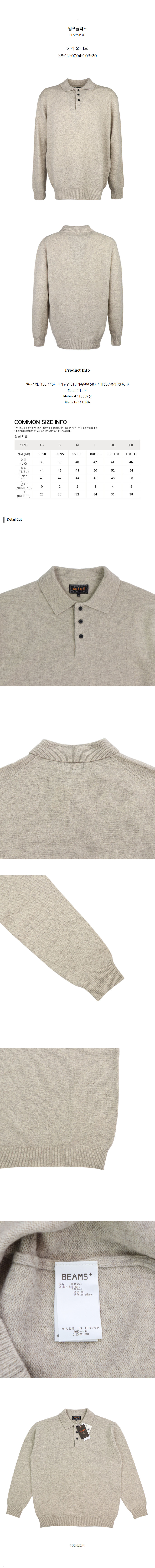 빔즈플러스 카라 울 니트 38-12-0004-103-20 (XL)