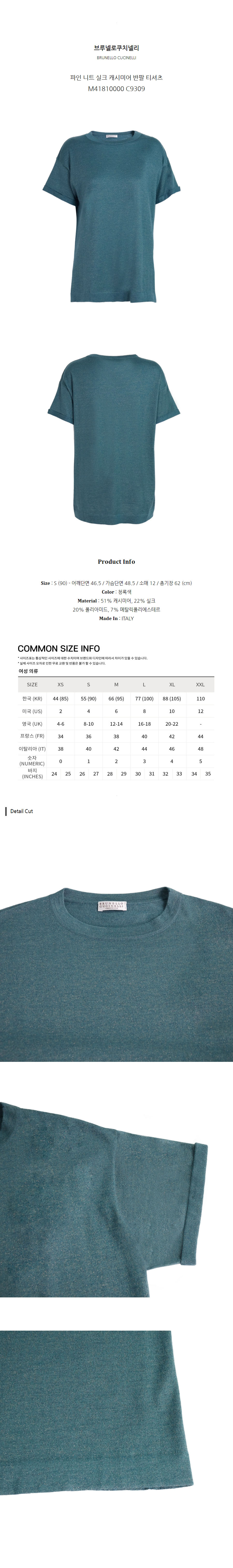 브루넬로쿠치넬리 파인 니트 실크 캐시미어 반팔 티셔츠 M41810000 C9309 (S)