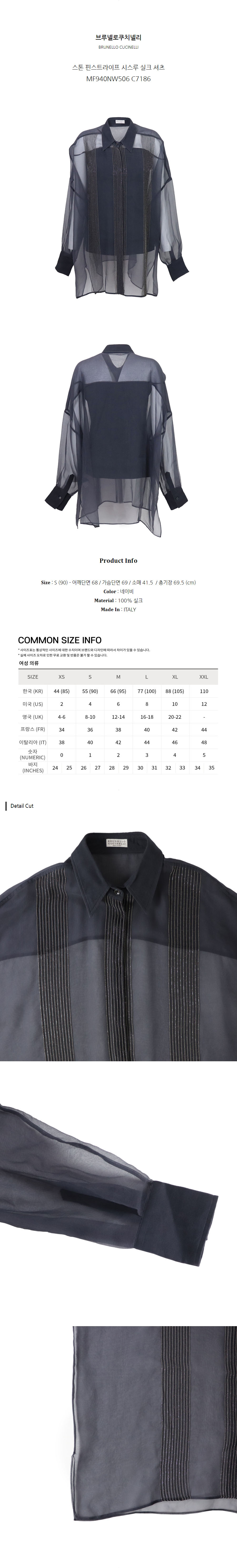 브루넬로쿠치넬리 스톤 핀스트라이프 시스루 실크 셔츠 MF940NW506 C7186 (S)