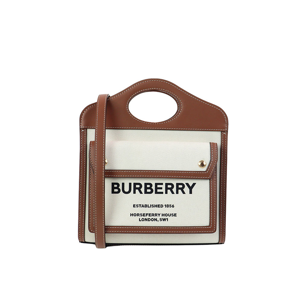 버버리 미니 투톤 캔버스 토트백 8039361 A1395