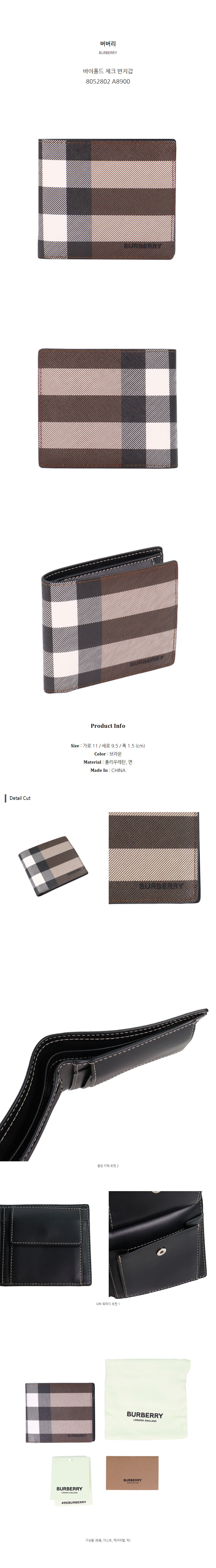 버버리 바이폴드 체크 반지갑 8052802 A8900