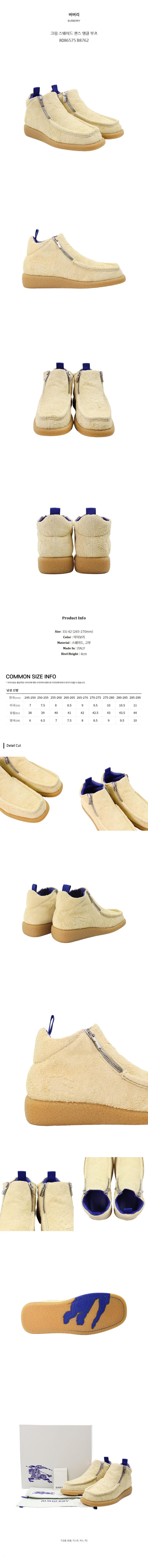 버버리 크림 스웨이드 챈스 앵클 부츠 8086575 B8762 (EU 42)