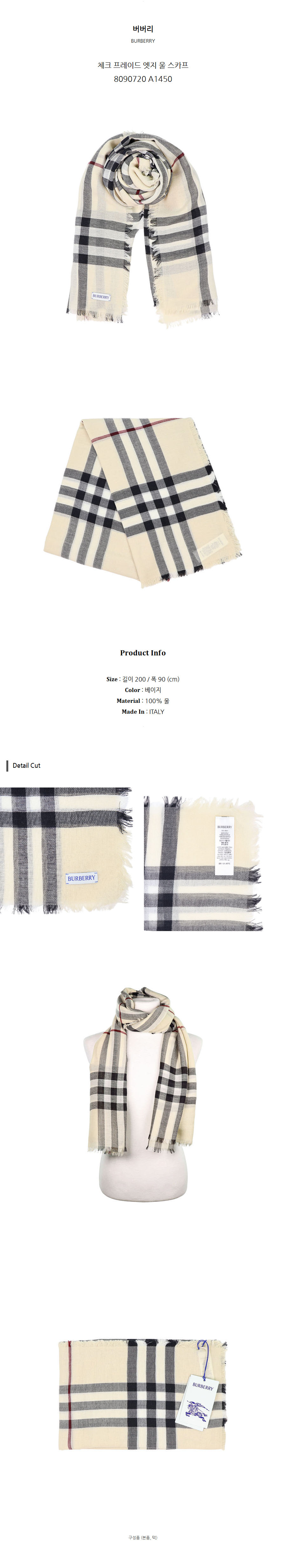 버버리 체크 프레이드 엣지 울 스카프 8090720 A1450