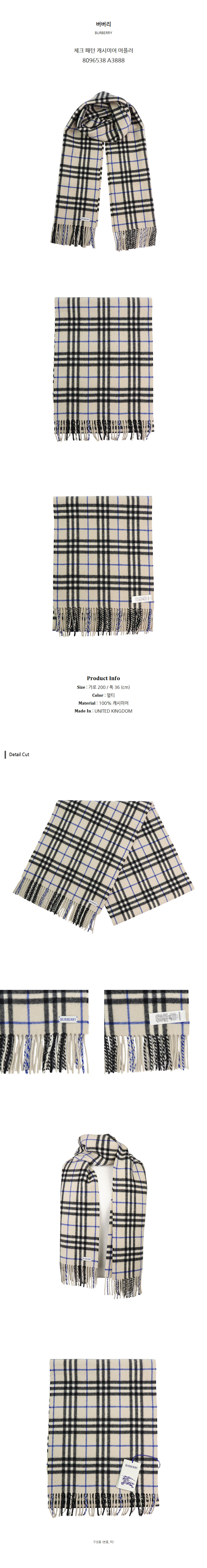 버버리 체크 패턴 캐시미어 머플러 8096538 A3888