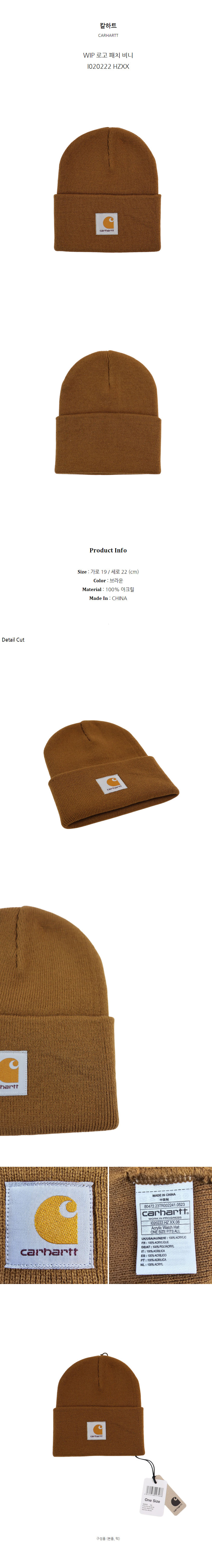 칼하트 WIP 로고 패치 비니 I020222 HZXX