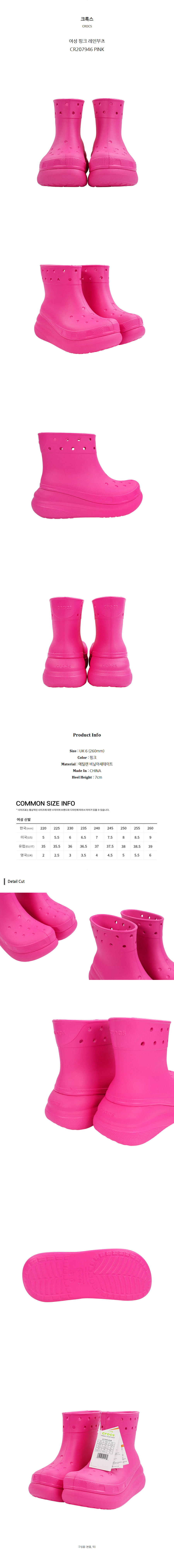 크록스 여성 핑크 레인부츠 CR207946 PINK (UK 6)