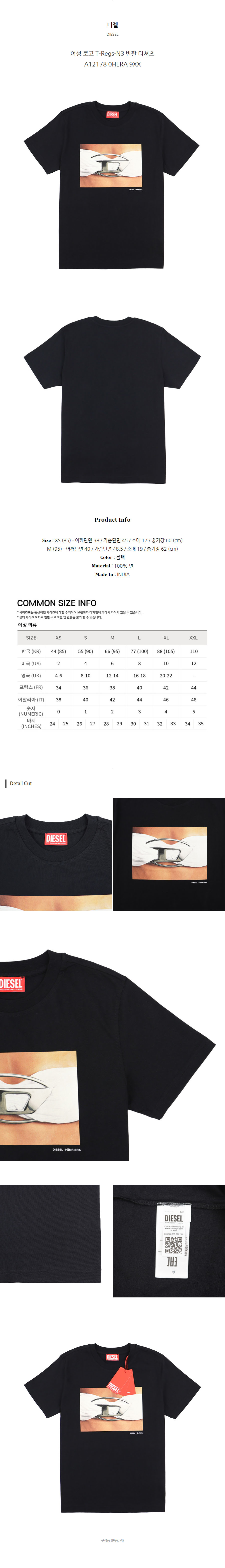디젤 여성 로고 T-Regs-N3 반팔 티셔츠 A12178 0HERA 9XX (XS)