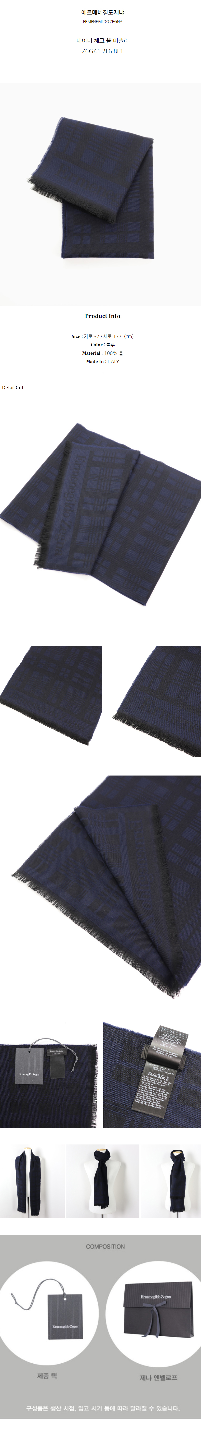 에르메네질도제냐 네이비 체크 울 머플러 Z6G41 2L6 BL1