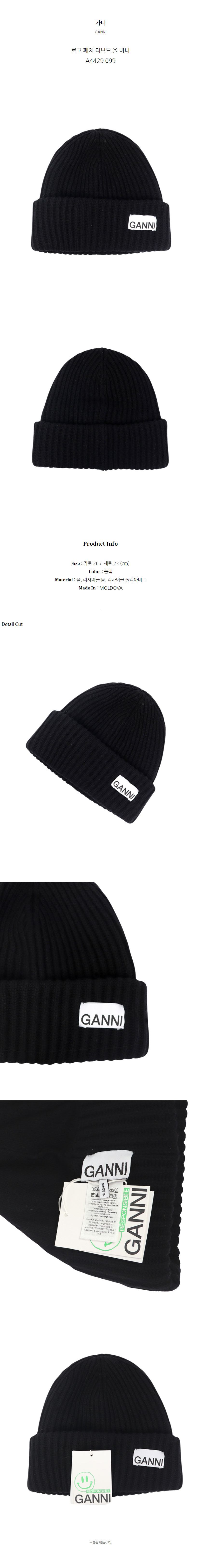 가니 로고 패치 리브드 울 비니 A4429 099