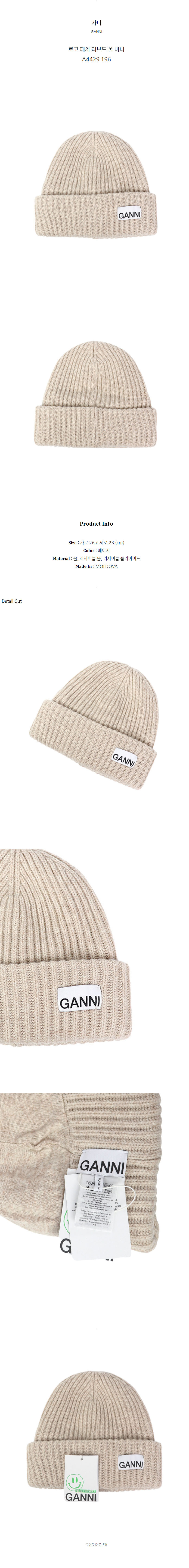 가니 로고 패치 리브드 울 비니 A4429 196