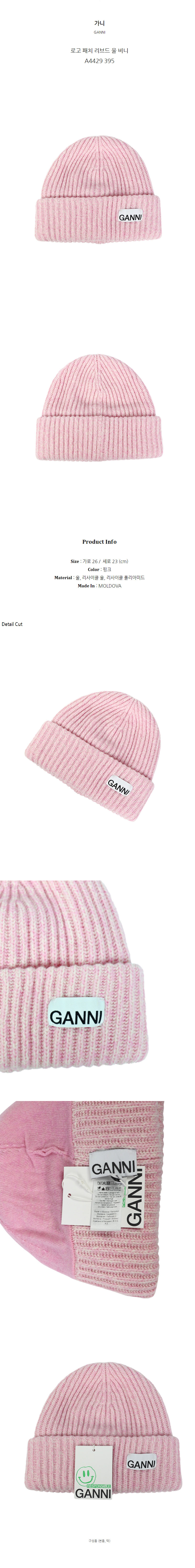 가니 로고 패치 리브드 울 비니 A4429 395