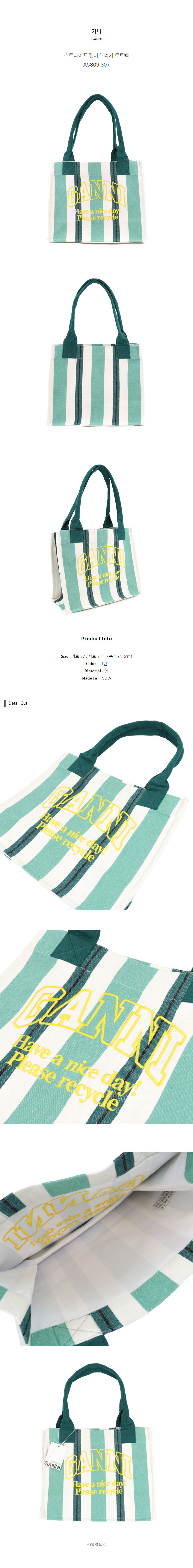 가니 스트라이프 캔버스 라지 토트백 A5809 807