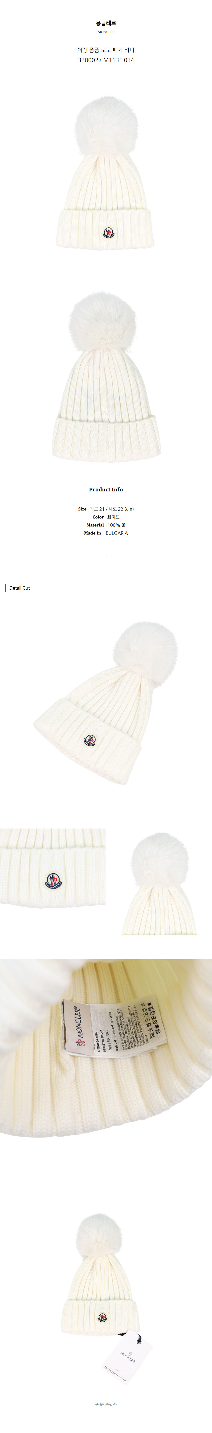 몽클레르 여성 폼폼 로고 패치 비니 3B00027 M1131 034