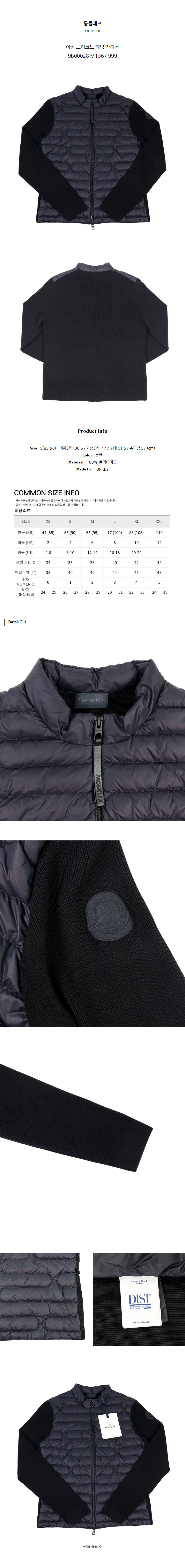 몽클레르 여성 트리코트 패딩 가디건 9B00028 M1367 999 (S)