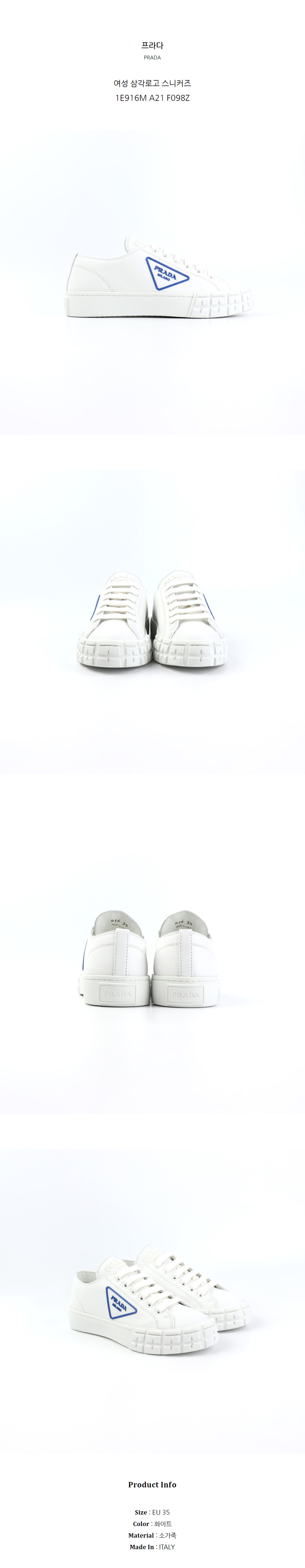 프라다 여성 삼각로고 스니커즈 1E916M A21 F098Z (EU 35)