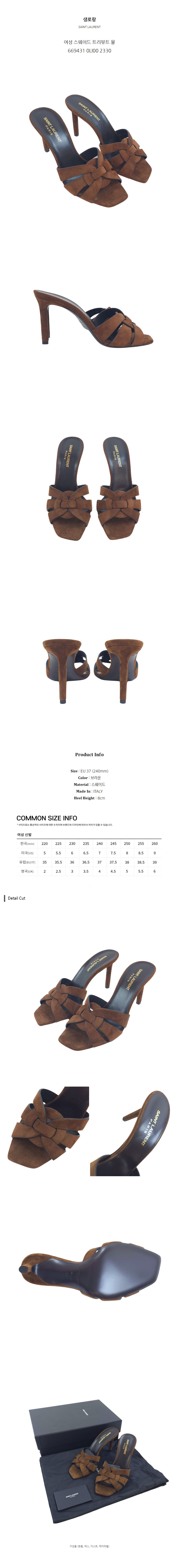 생로랑 여성 스웨이드 트리뷰트 뮬 669431 0LI00 2330 (EU 37)