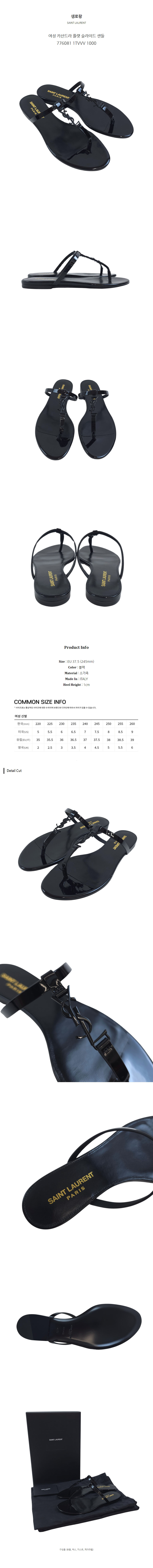 생로랑 여성 카산드라 플랫 슬라이드 샌들 776081 1TVVV 1000 (EU 37.5)