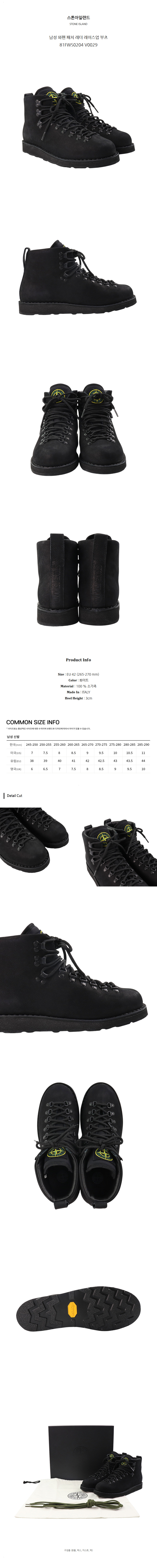스톤아일랜드 남성 와펜 패치 레더 레이스업 부츠 81FWS0204 V0029 (EU 42)