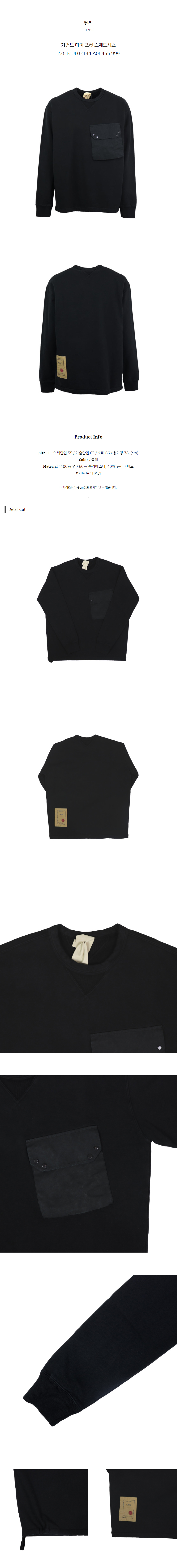 텐씨 가먼트 다이 포켓 스웨트셔츠 22CTCUF03144 A06455 999 (L)