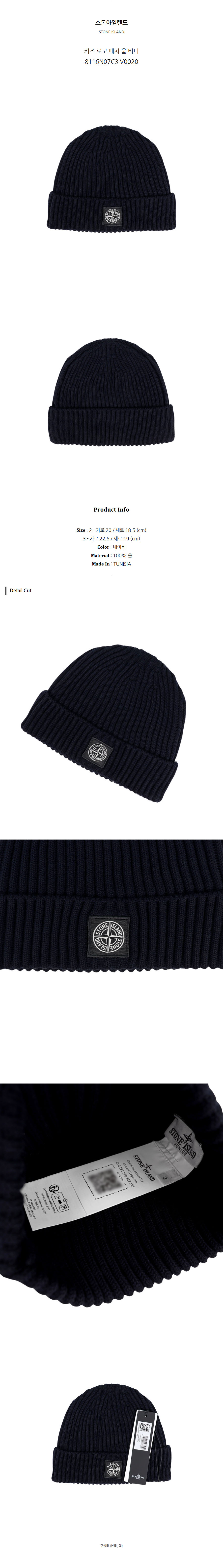 스톤아일랜드 키즈 로고 패치 울 비니 8116N07C3 V0020 (3)