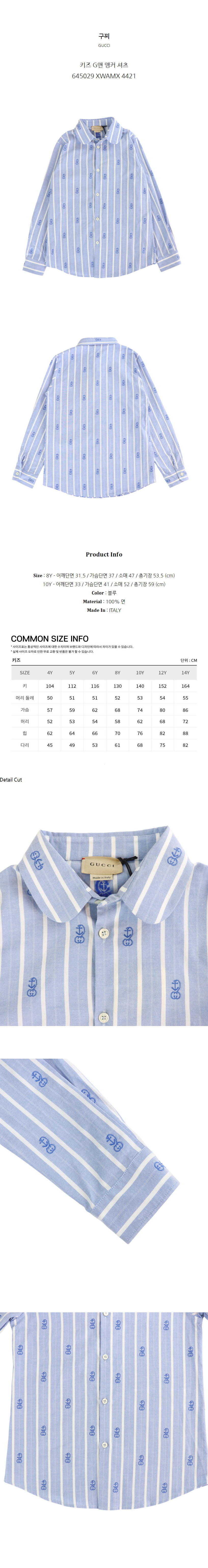 구찌 키즈 G앤 앵커 셔츠 645029 XWAMX 4421 (8Y)