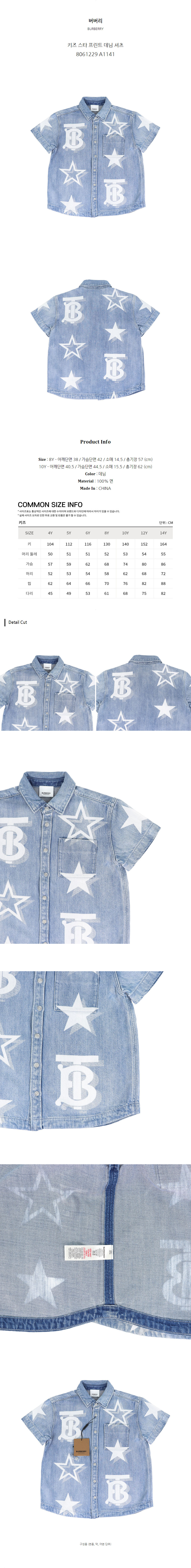 버버리 키즈 스타 프린트 데님 셔츠 8061229 A1141 (10Y)