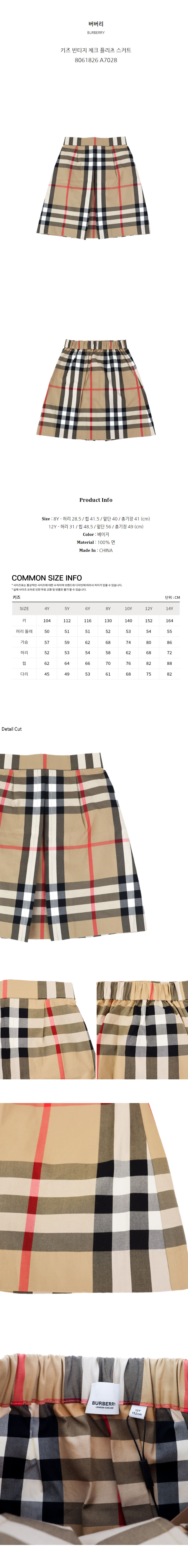 버버리 키즈 빈티지 체크 플리츠 스커트 8061826 A7028 (8Y)