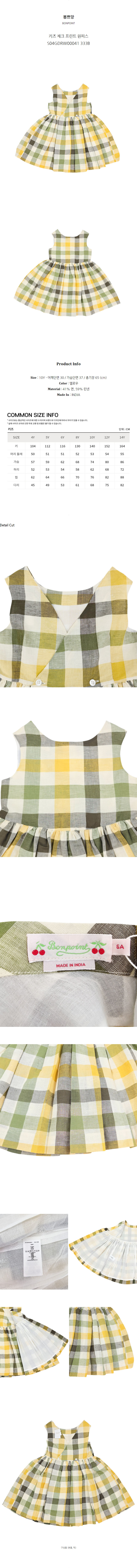 봉쁘앙 키즈 체크 프린트 원피스 S04GDRW00041 333B (10Y)
